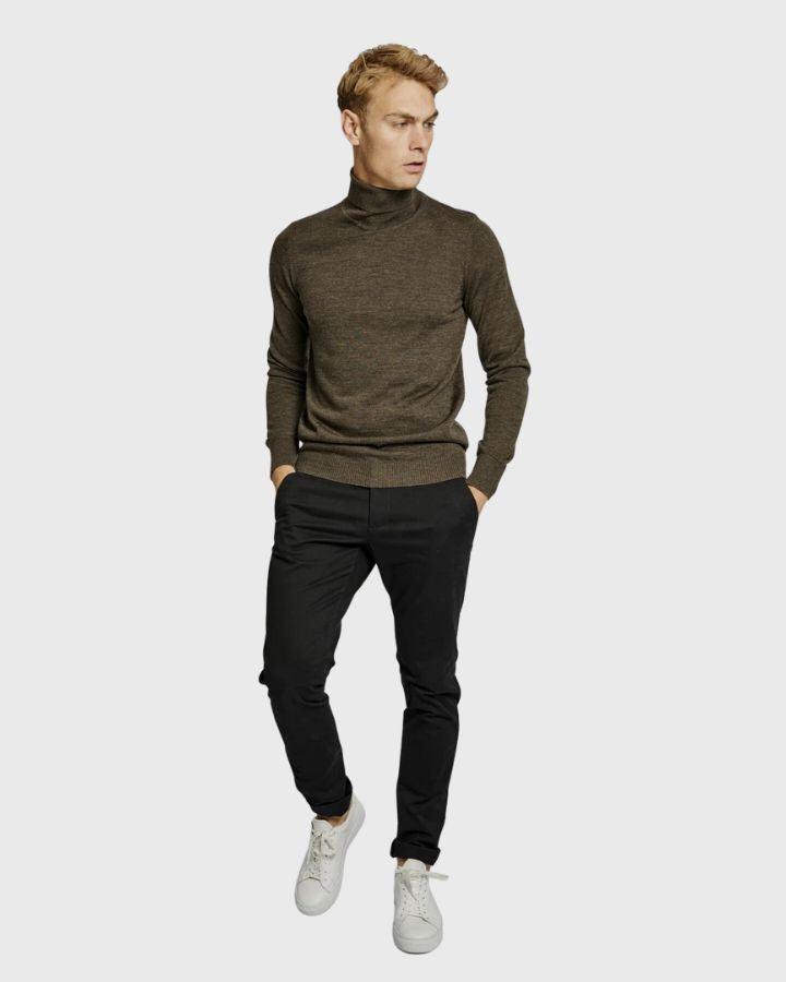 Saturn est un col roulé classique pour hommes pour la garde-robe d'automne et d'hiver. Il est finement tricoté dans un mélange de laine et d'acrylique. Nous l'avons conçu avec un col roulé côtelé et des détails côtelés sur les poignets et l'ourlet, ce qui lui donne un joli look. Saturn convient à la fois aux looks professionnels et décontractés.
