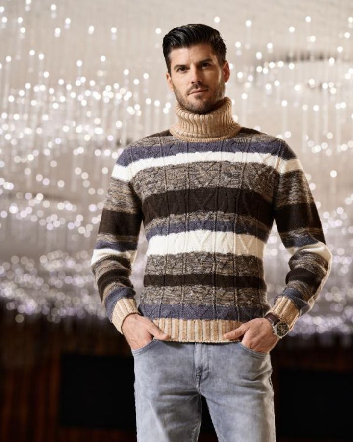 Ce col roulé est un choix parfait pour les journées fraîches d'automne ou d'hiver. Fabriqué en partie avec de la laine vierge, il est doux et confortable à porter. Les bandes horizontales de couleur ajoutent une touche de style et de sophistication, tout en restant facile à assortir avec d'autres pièces de votre garde-robe. Le col roulé est également un choix pratique pour les jours où vous voulez rester au chaud tout en ayant l'air élégant.