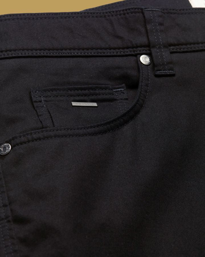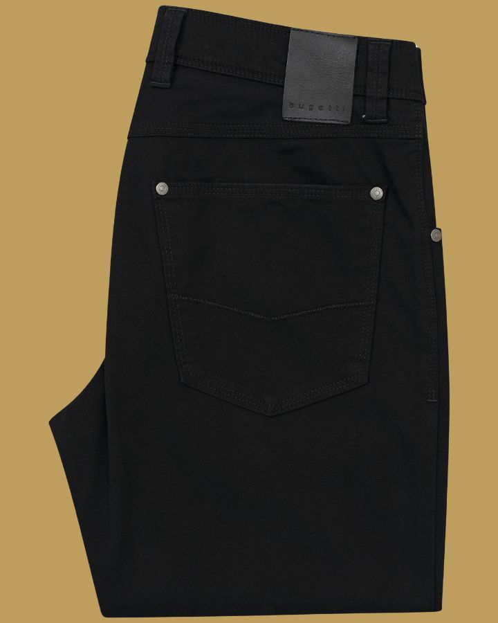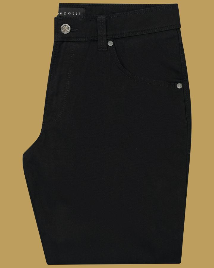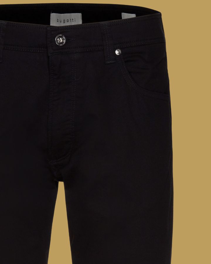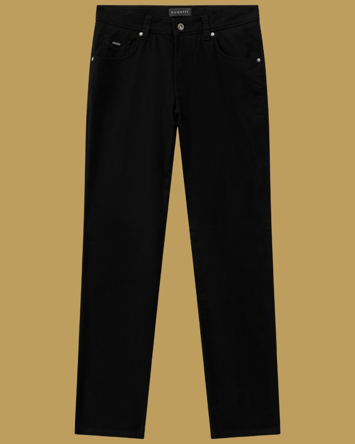 Élégance et simplicité se rencontrent avec ce pantalon droit signé Bugatti. Conçu dans un tissu noir uni, il offre une allure raffinée idéale pour toutes les occasions. Sa coupe classique, ses cinq poches fonctionnelles, dont une poche monnaie discrète, et ses passants de ceinture assurent confort et praticité. Fermeture zippée avec bouton pour un maintien impeccable, ce modèle incarne le style sans effort. À associer facilement avec une chemise ou un t-shirt pour un look chic ou décontracté.