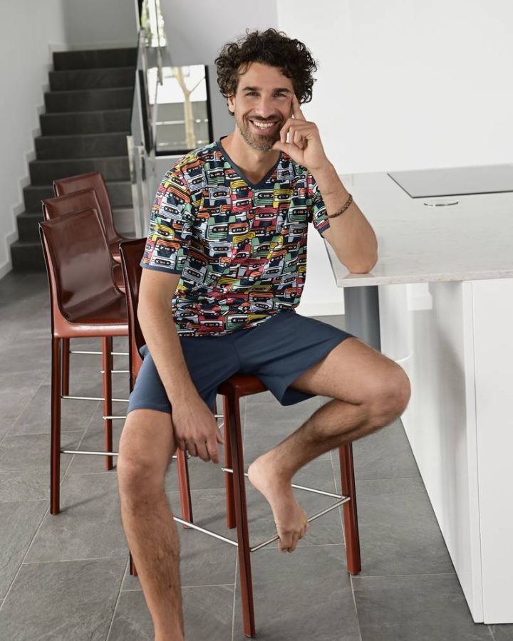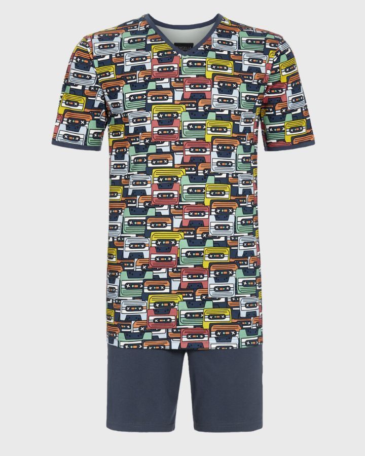 Avec son design rétro, ce shorty est un bel accroche-regard. Des passepoils contrastés ornent l'encolure en V et les manches. Un short uni avec une ceinture élastique douce complète parfaitement la tenue. Ce shorty tendance en coton de haute qualité vous accompagne à merveille tout au long de l'été et vous garantit une bonne nuit de sommeil.